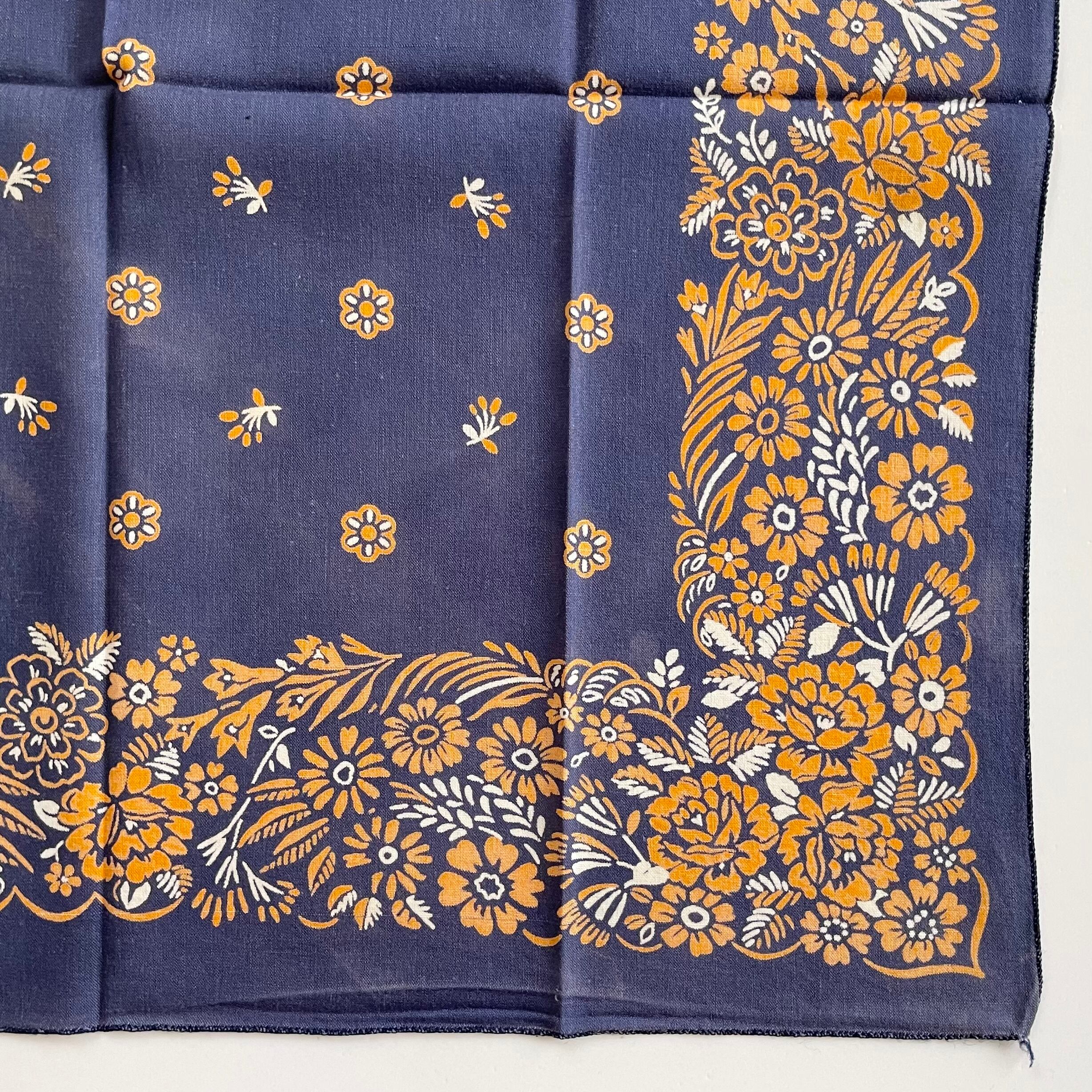 【Navy!】RN14193 花柄 筆記体 ヴィンテージ バンダナ MADE IN USA