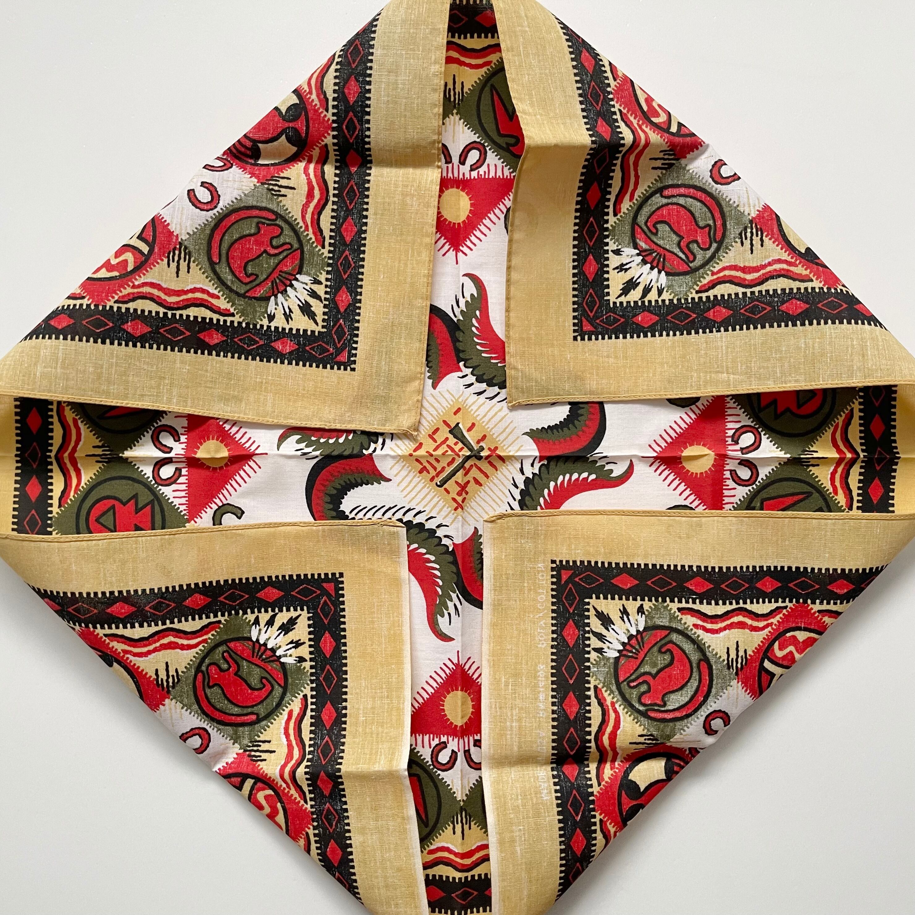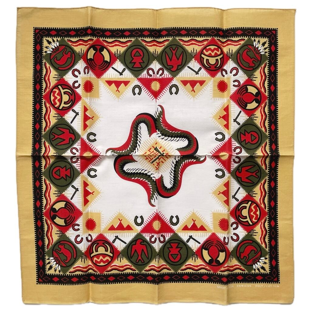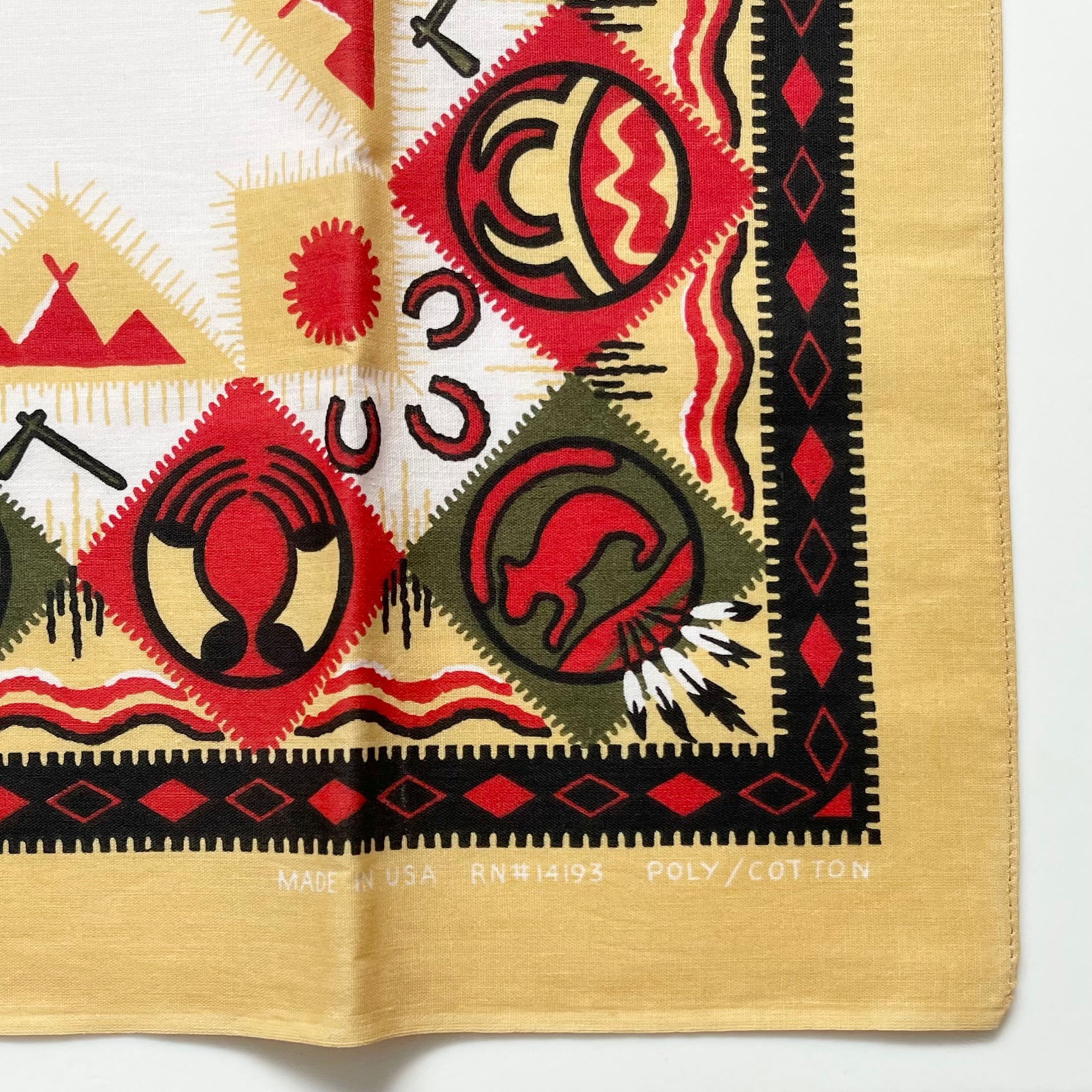 【Deadstock】80~90s RN14193 ネイティブ ヴィンテージバンダナ MADE IN USA 紺