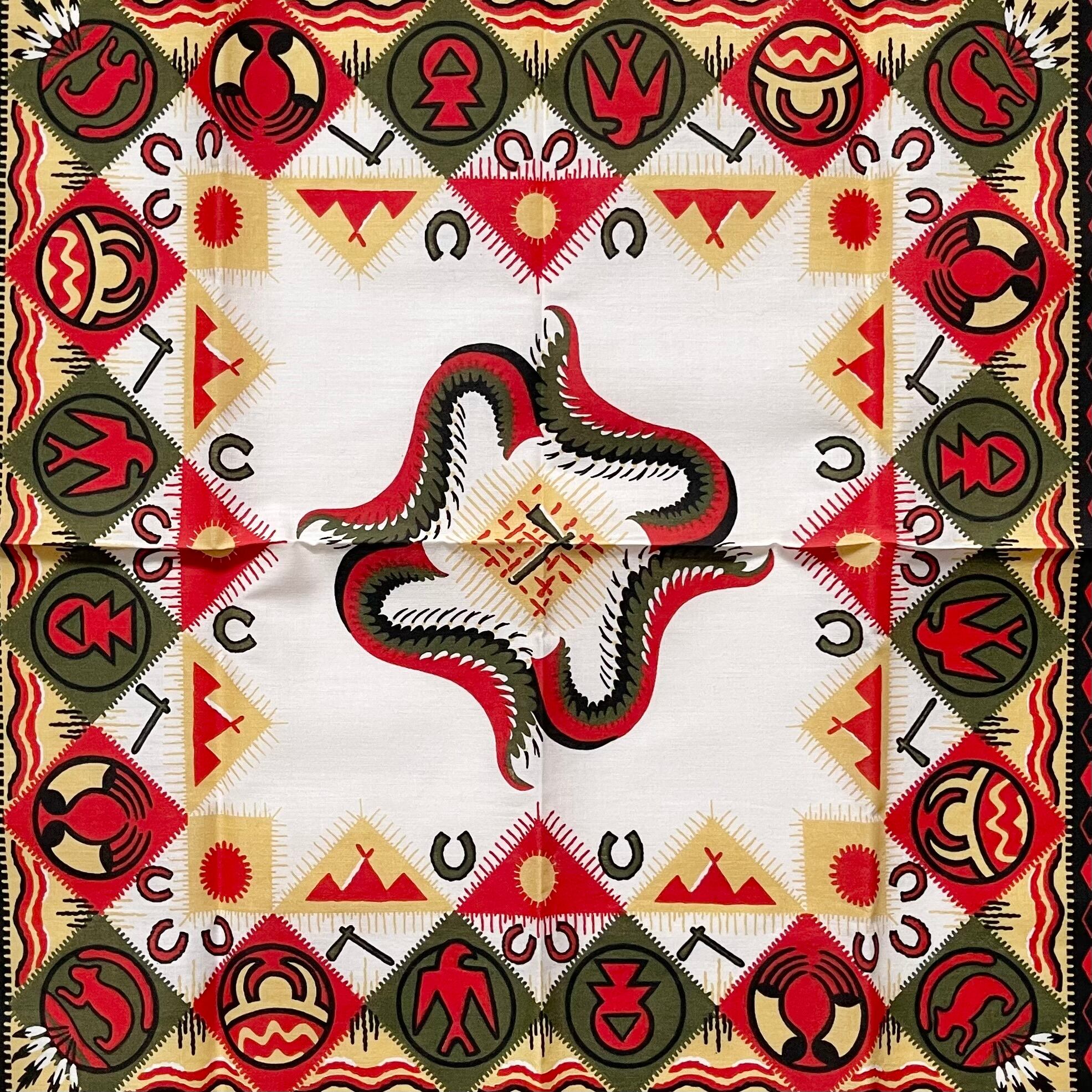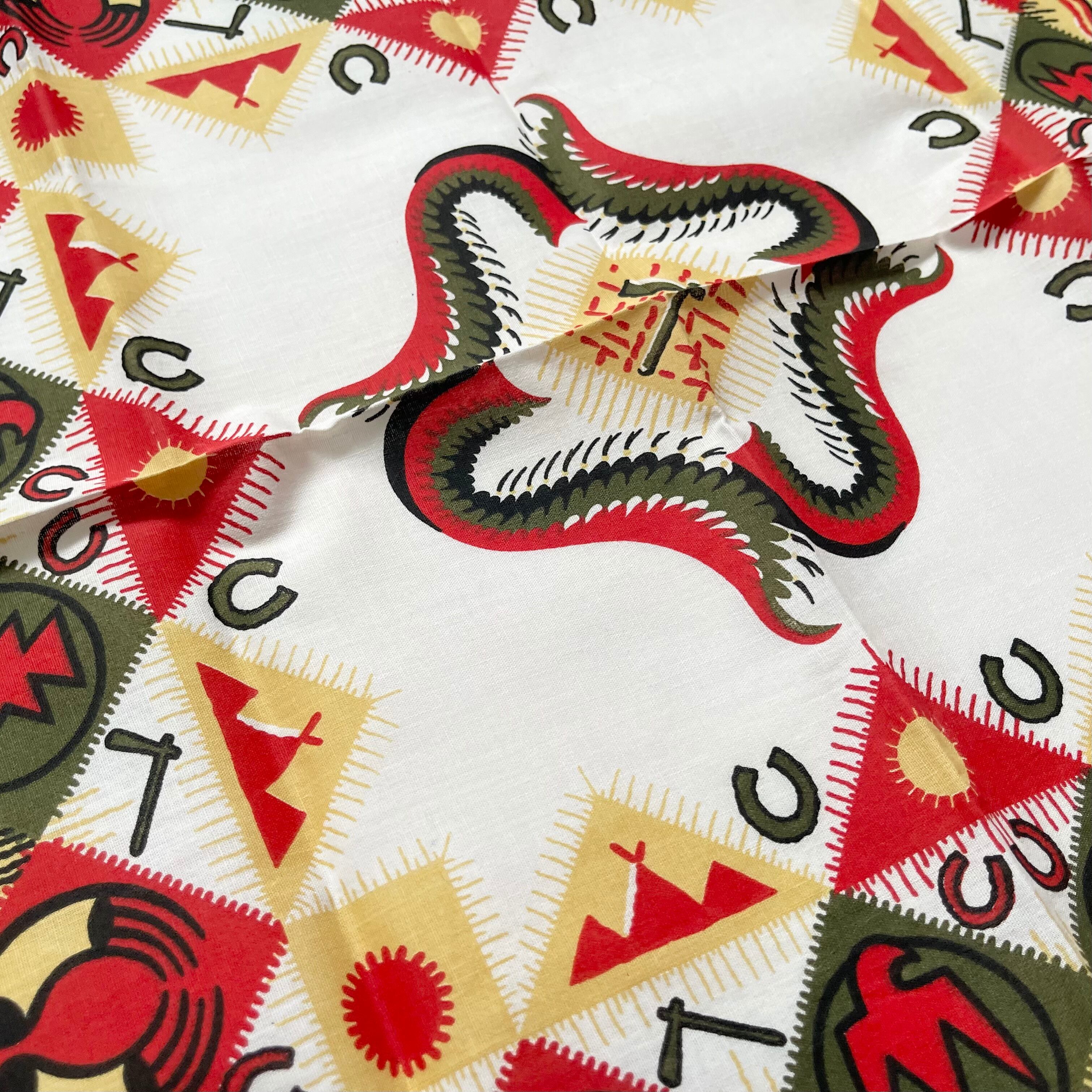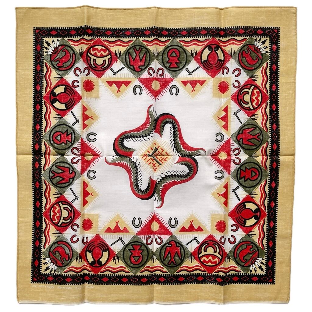 【Deadstock】80~90s RN14193 ネイティブ ヴィンテージバンダナ MADE IN USA 紺