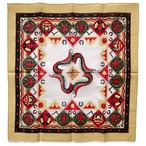 サンダーバードや山・太陽など様々な柄で縁が構成され、中心部分には蛇みたいな柄。