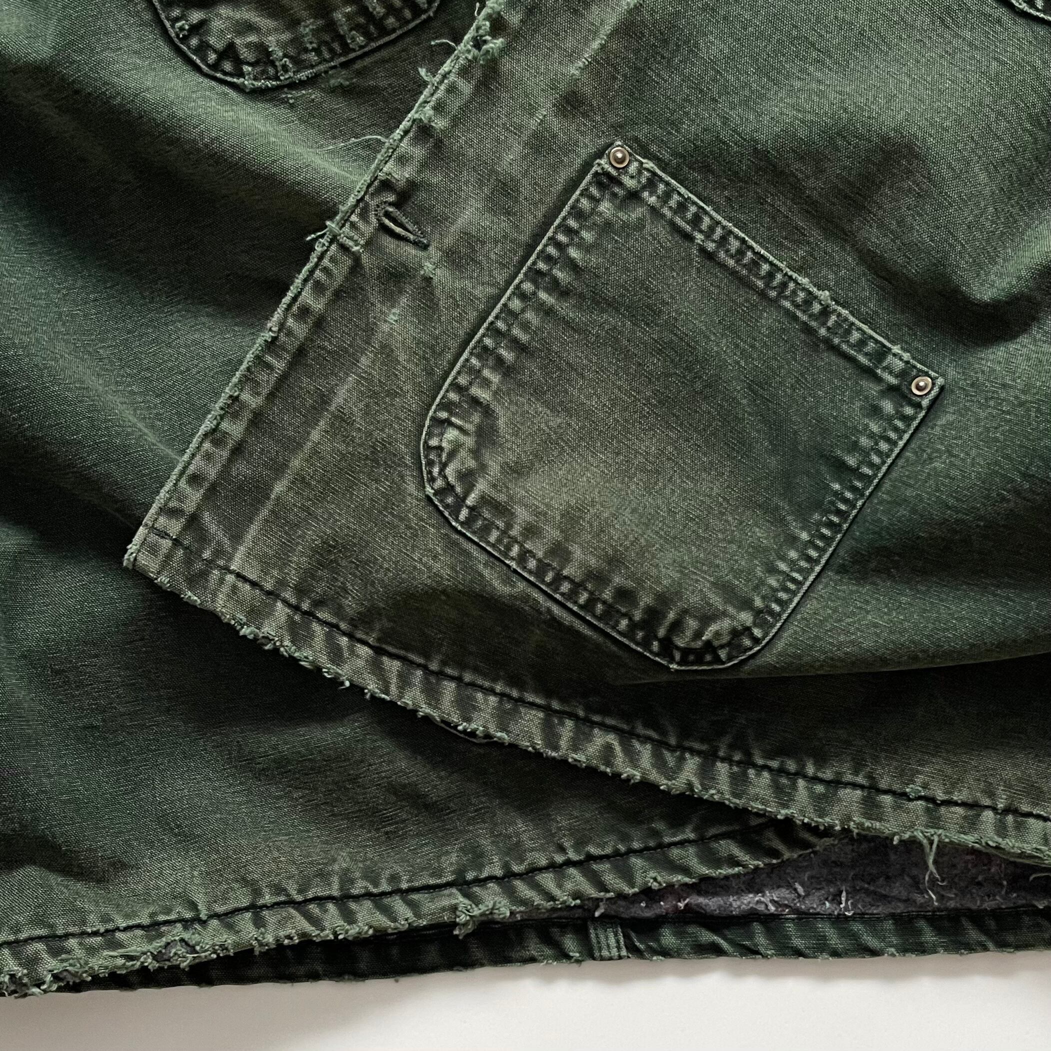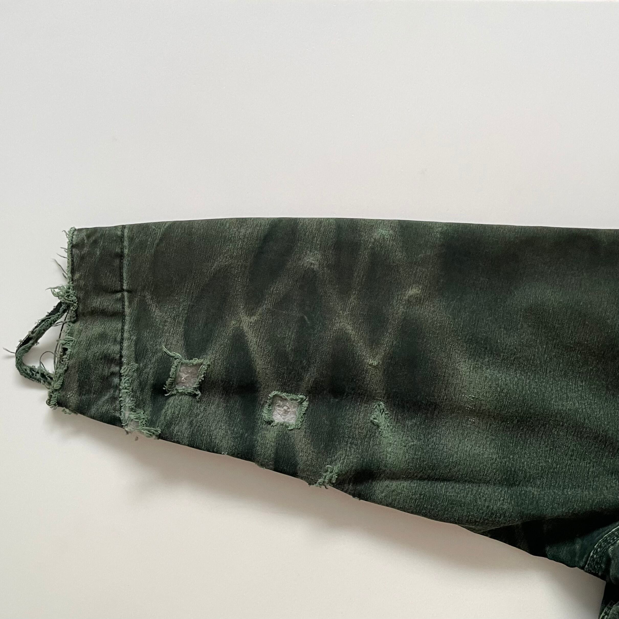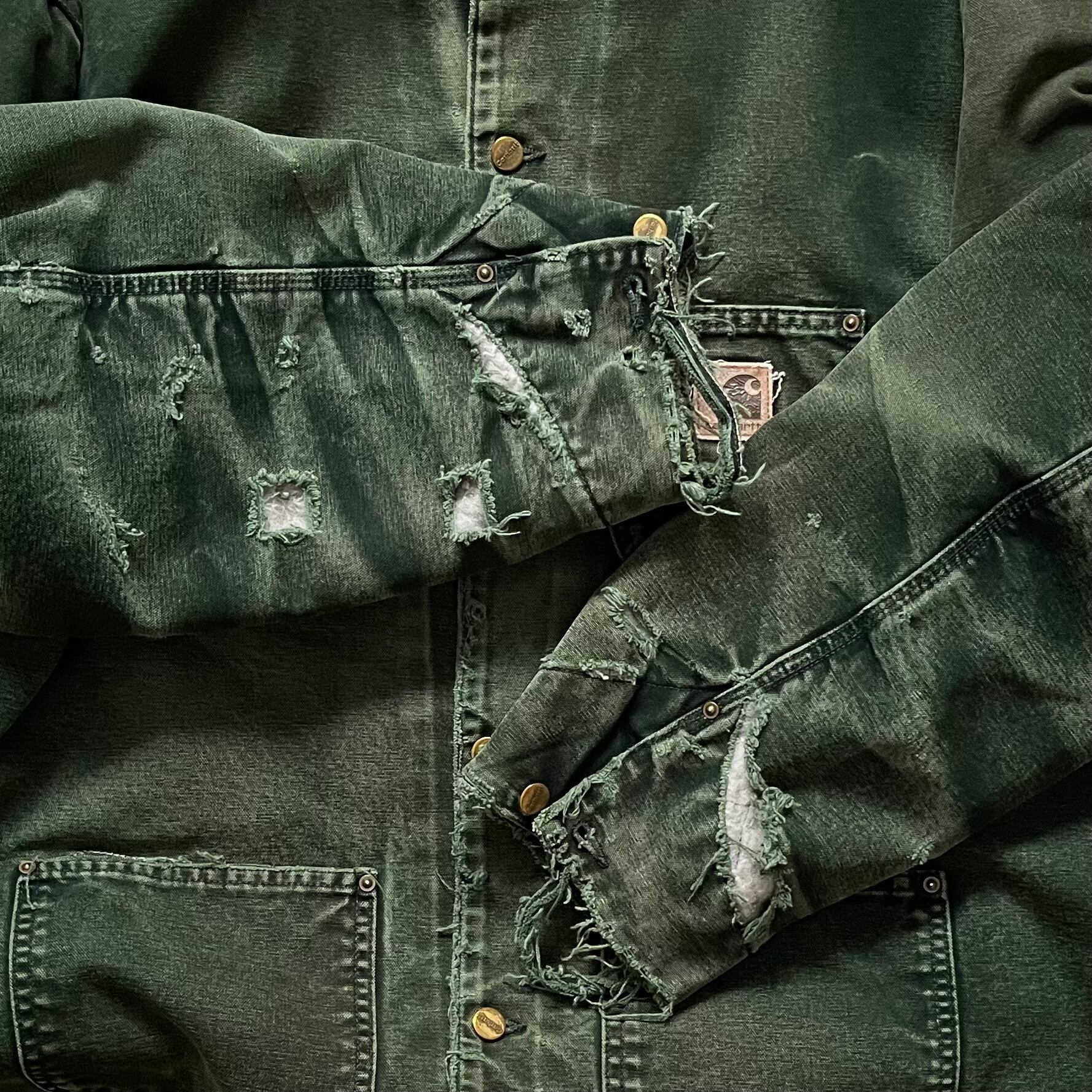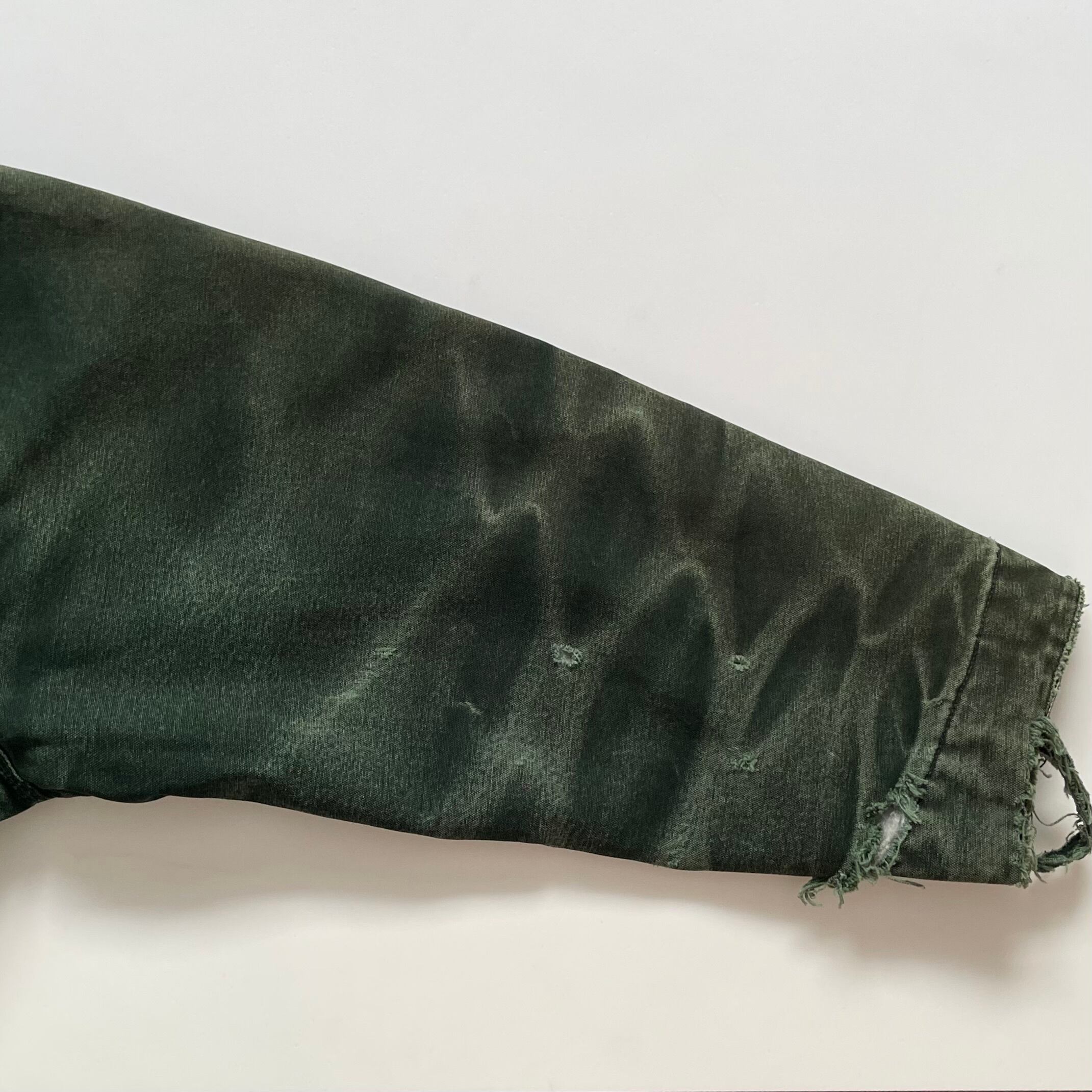 袖口、腕、裾、肩など多数の破れ。