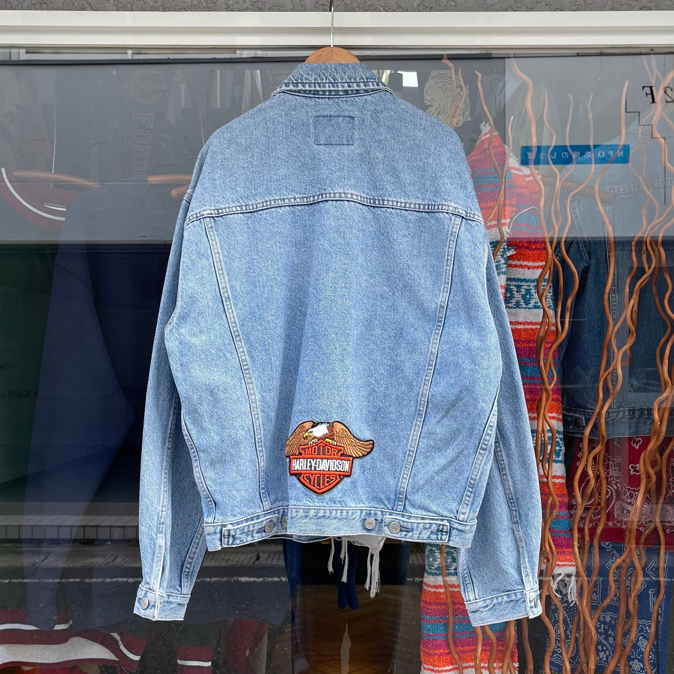 背面ハーレーワッペン付近に黄ばみ。