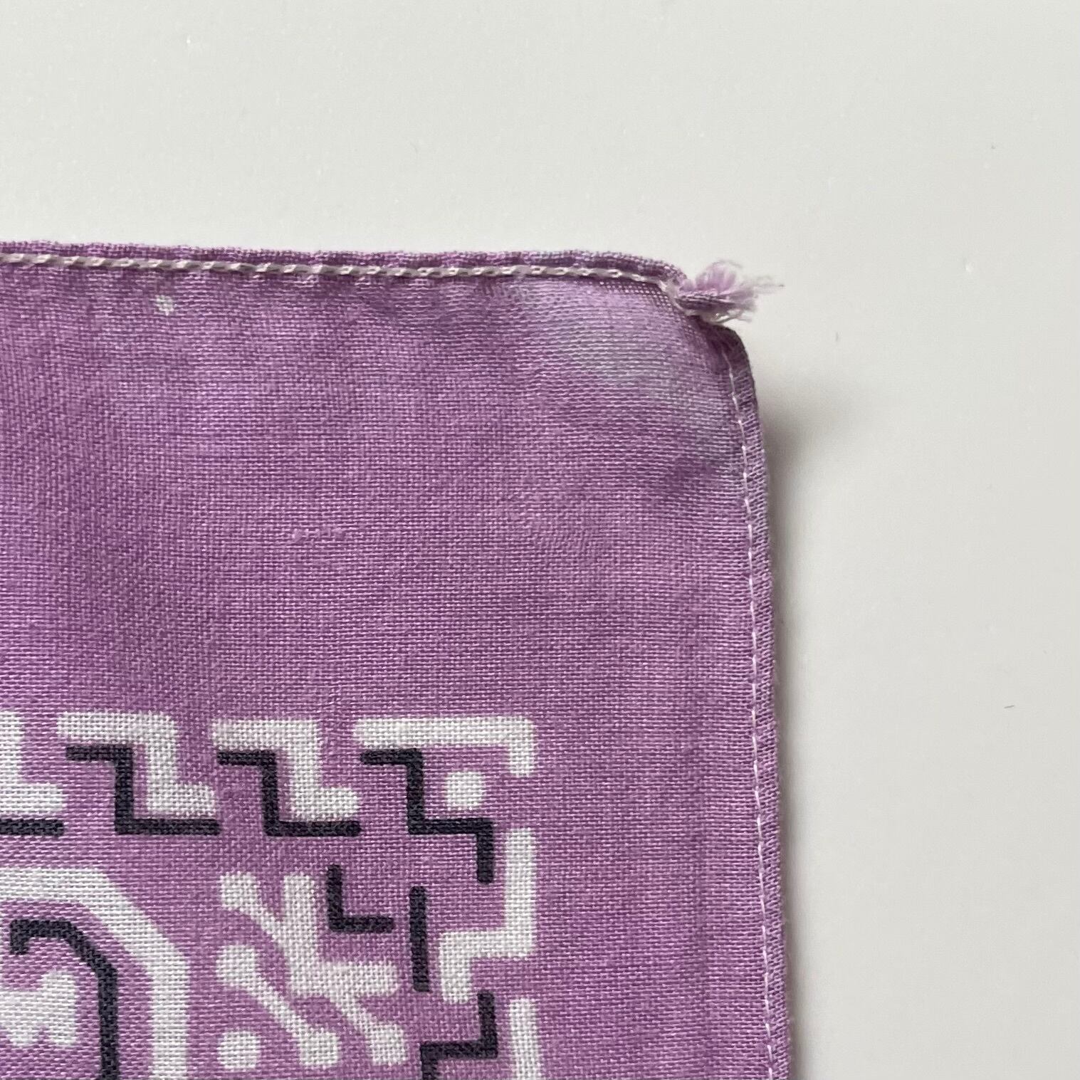 生地1辺が耳付き、3辺シングルステッチ。