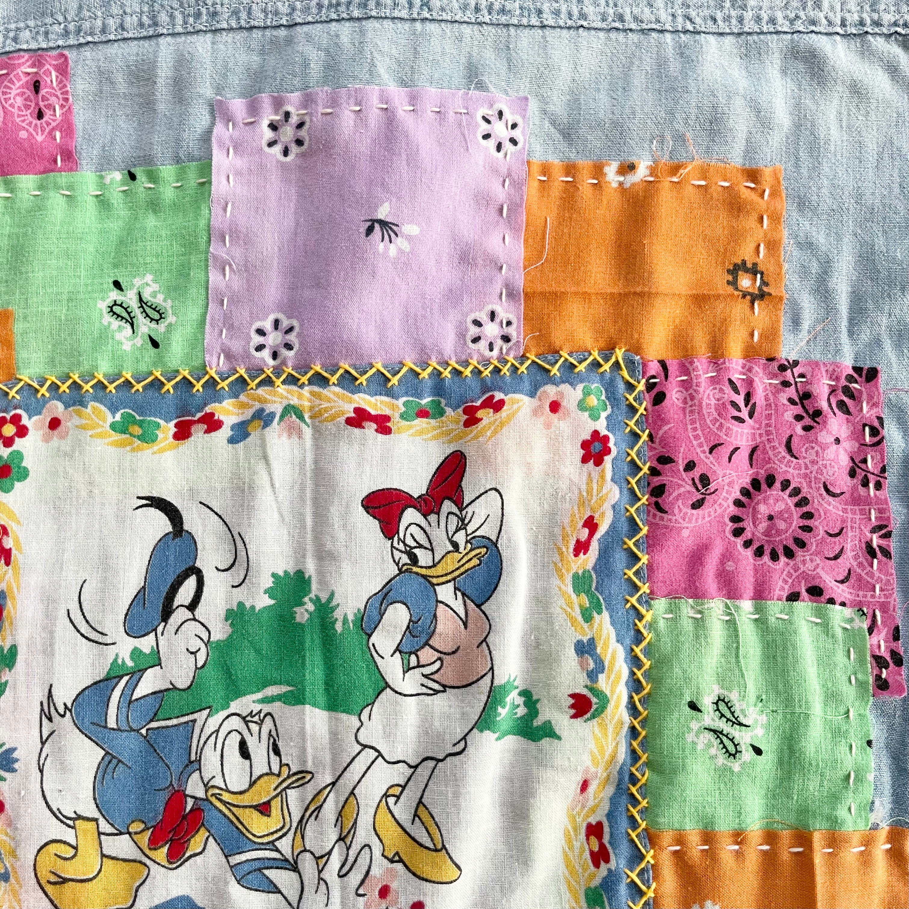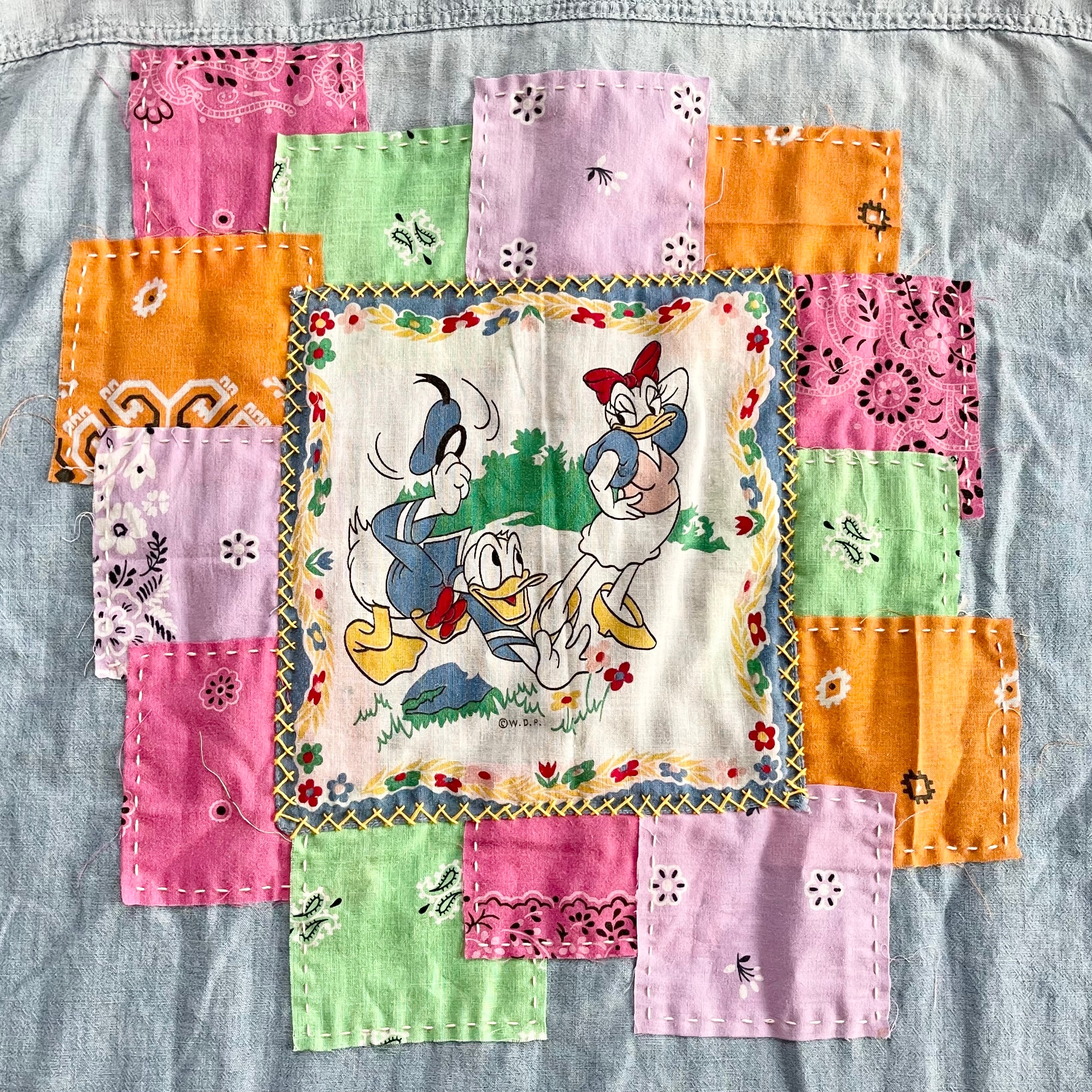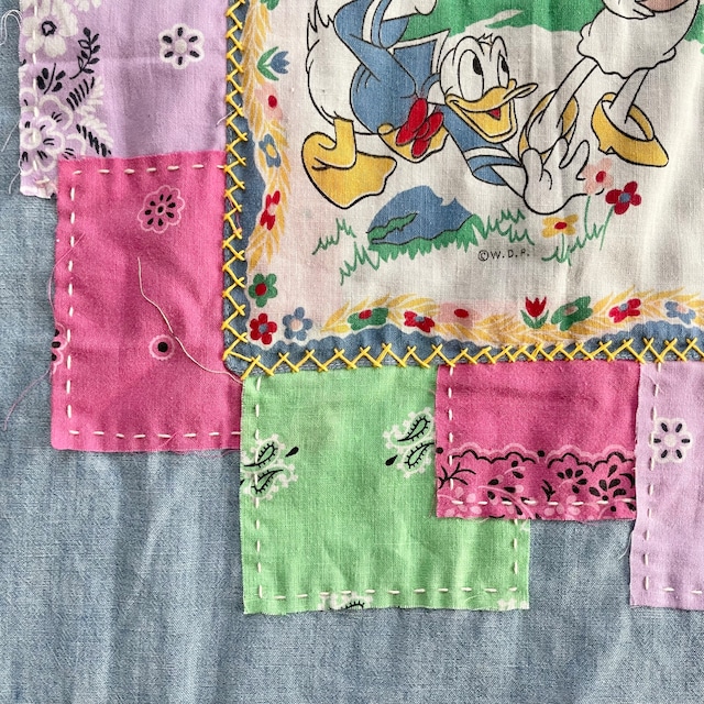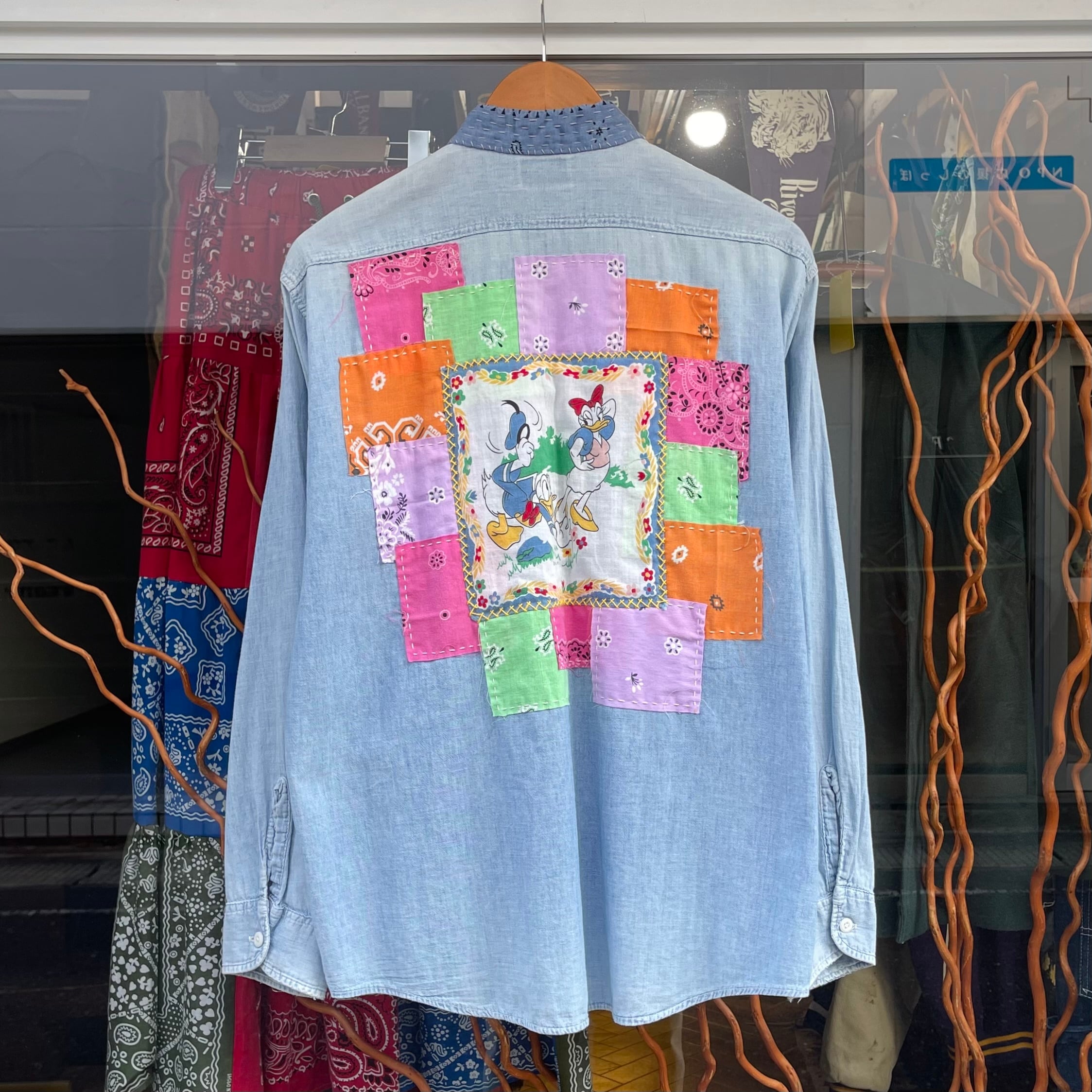 襟のリペアを施しノーカラー、そしてバッグにはバンダナを贅沢に使い刺し子でデザイン、唯一無二の存在に。