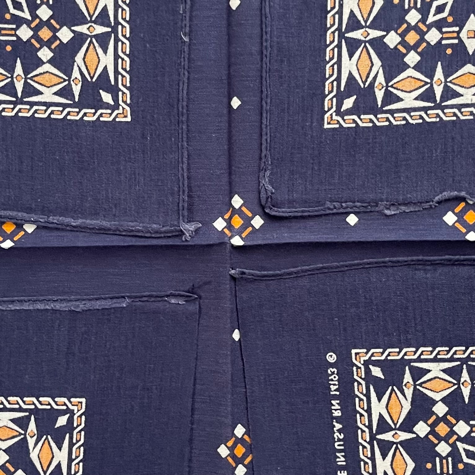生地1辺がミミ付き、3辺シングルステッチ。