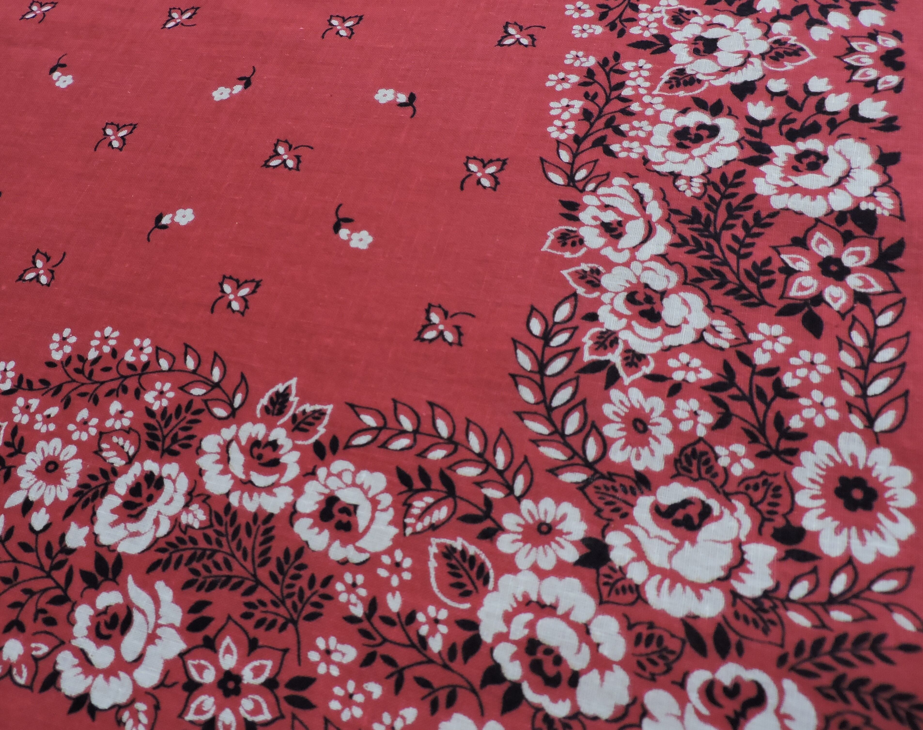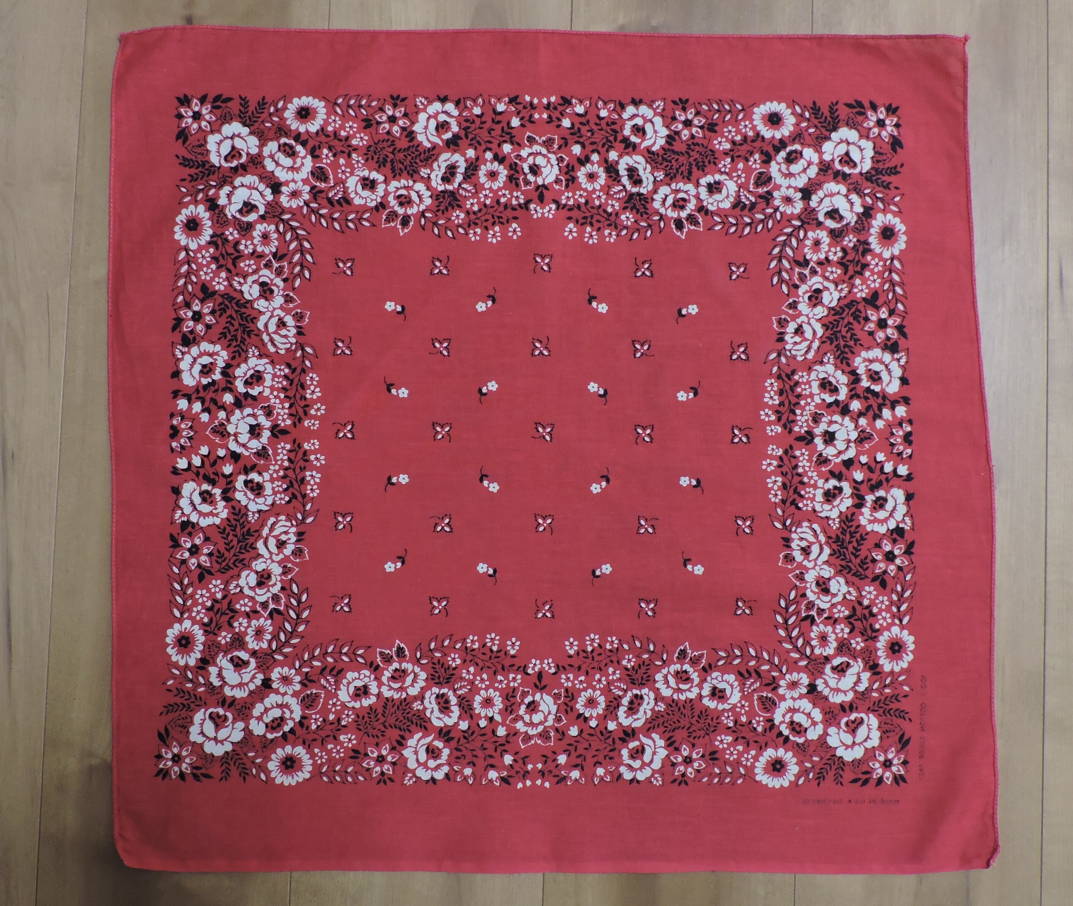 小花柄 赤ピンク ヴィンテージバンダナ アメリカ製