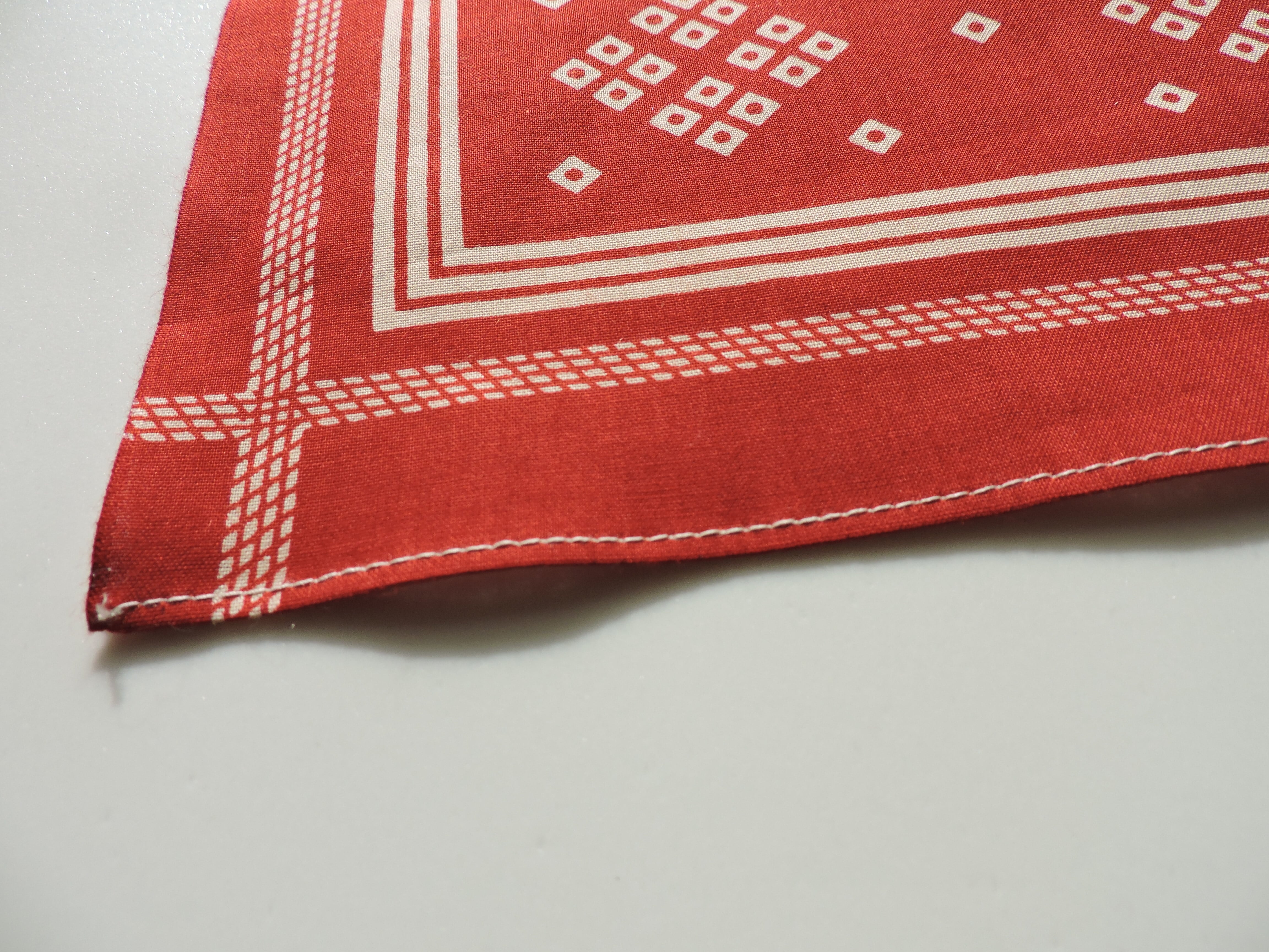 当ブランドは100年以上前のバンダナを再現、日本で最初から最後まで縫製した、綿100%の両耳バンダナ。