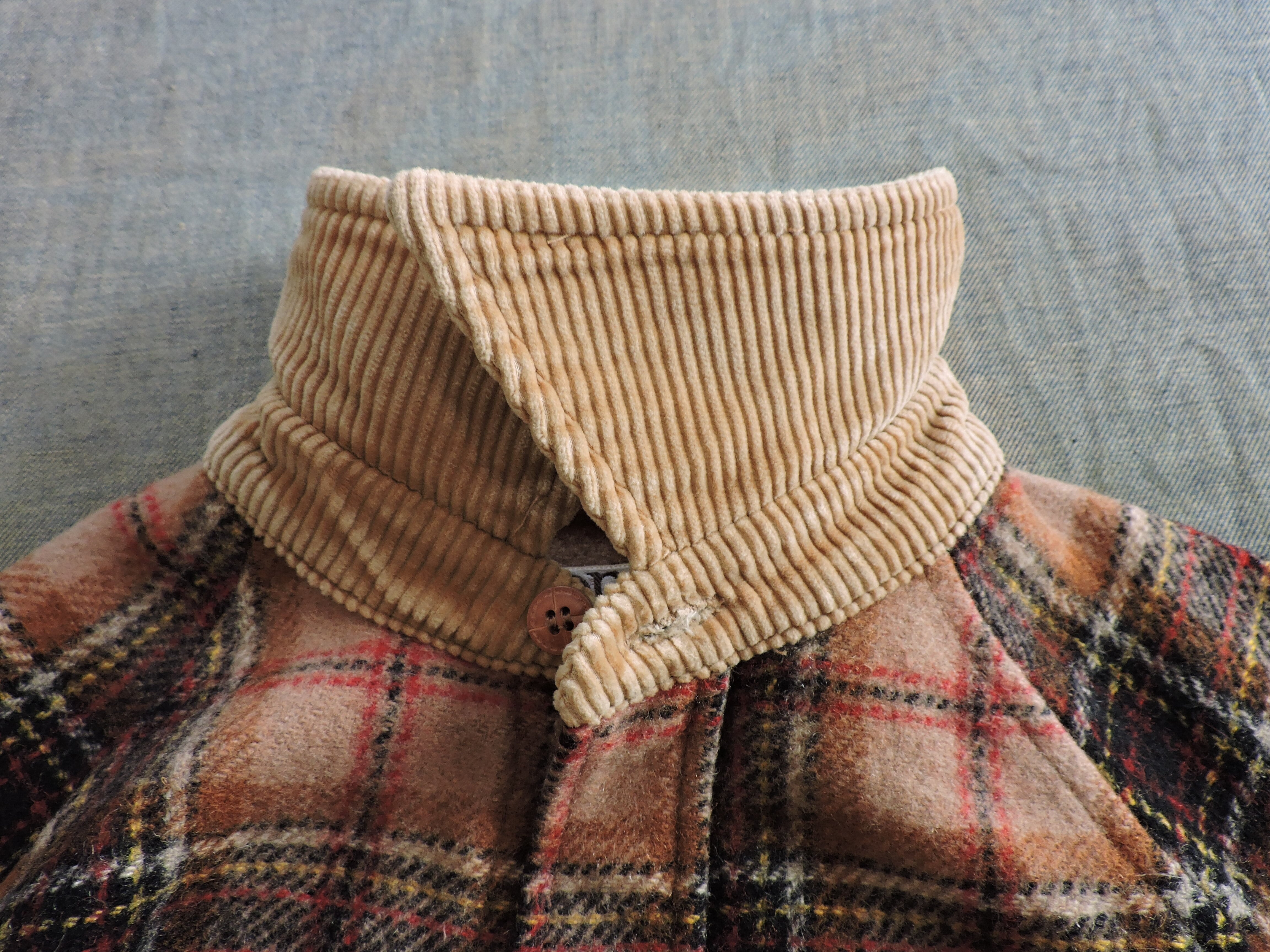 襟・袖口にコーデュロイの切り替えがあり。
