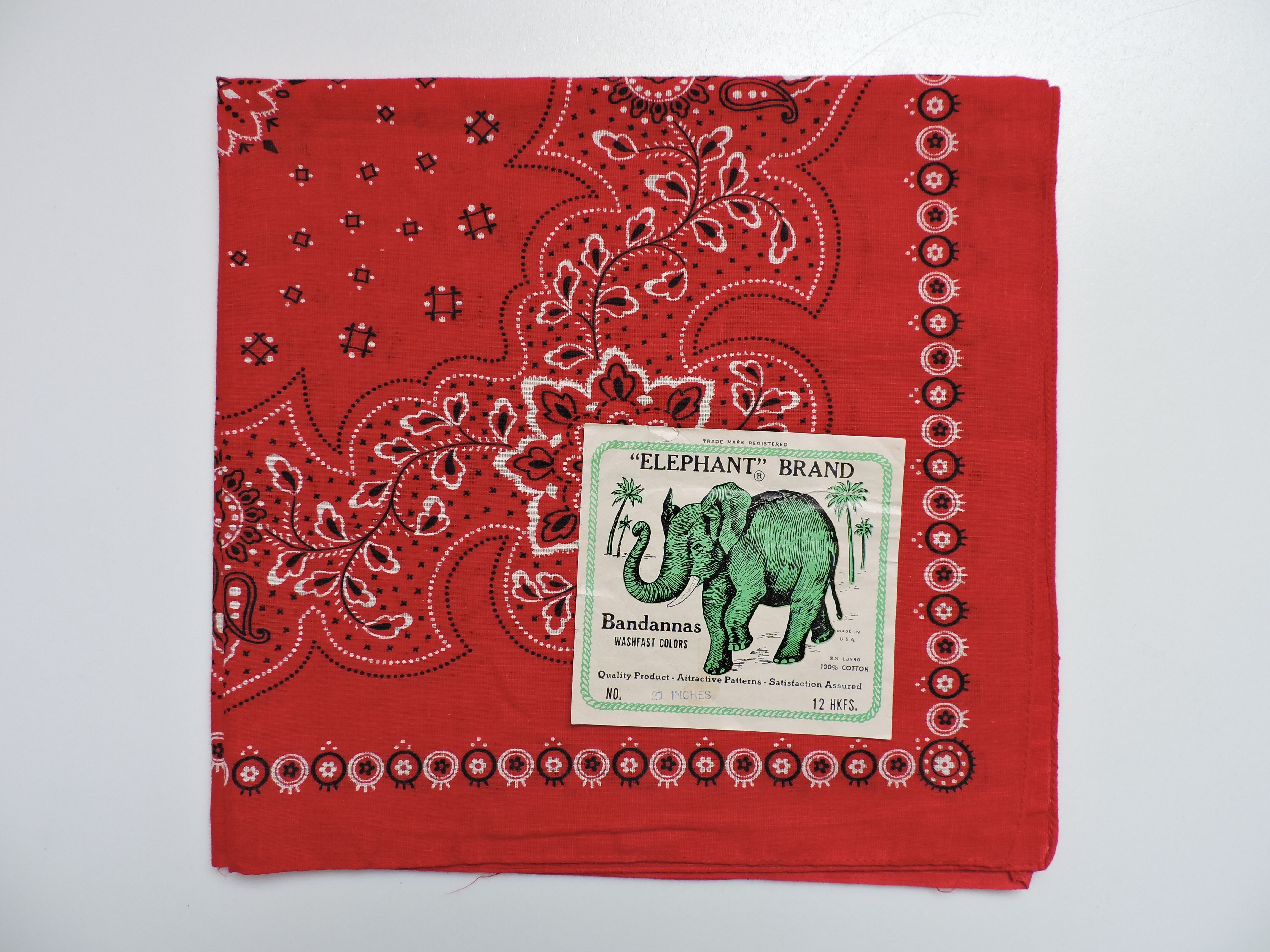 エレファントブランドの1970年代デッドストックバンダナ。
