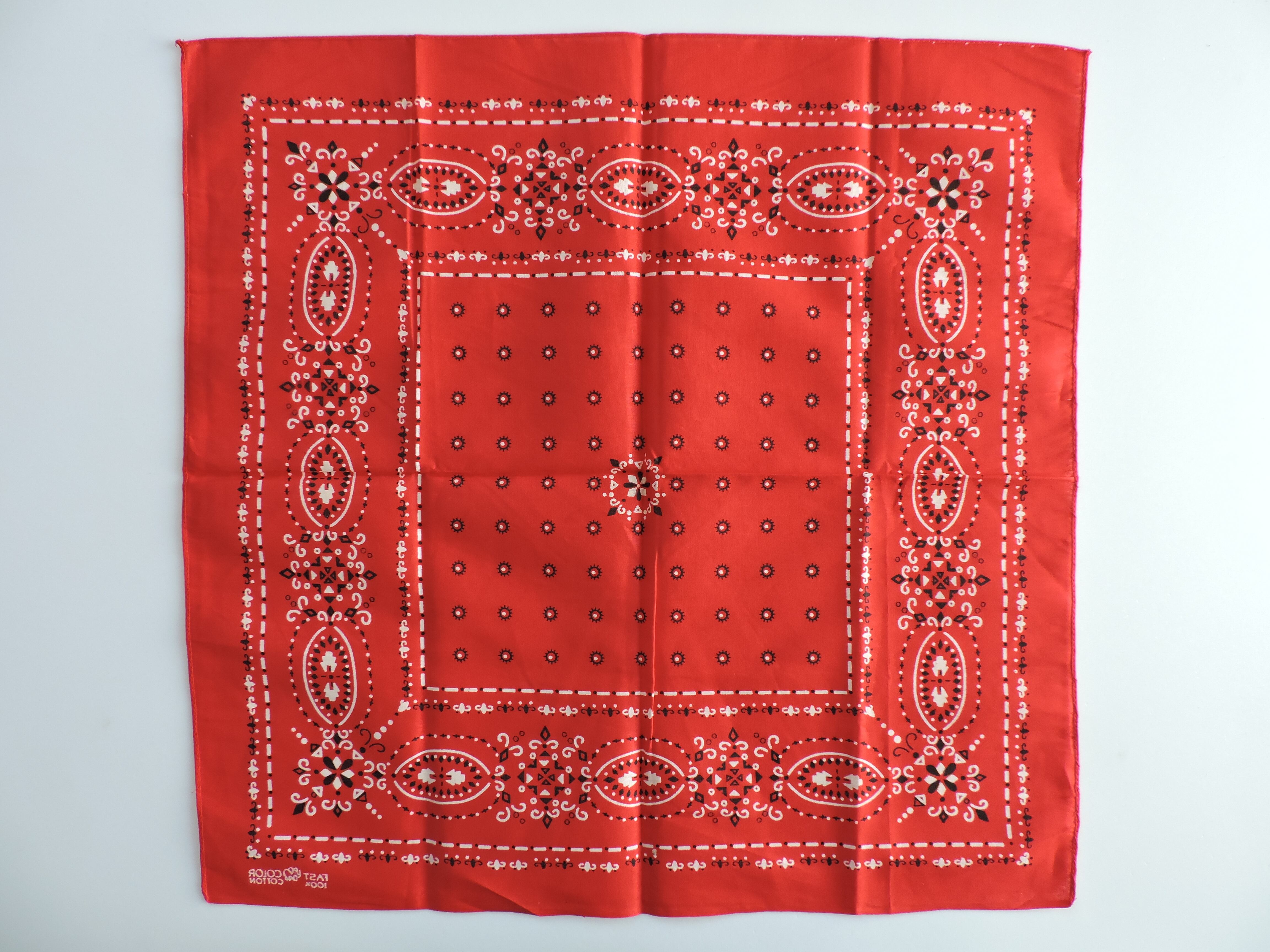 生地1辺がミミ付き、2辺がシングルステッチ、1辺チェーンステッチ。