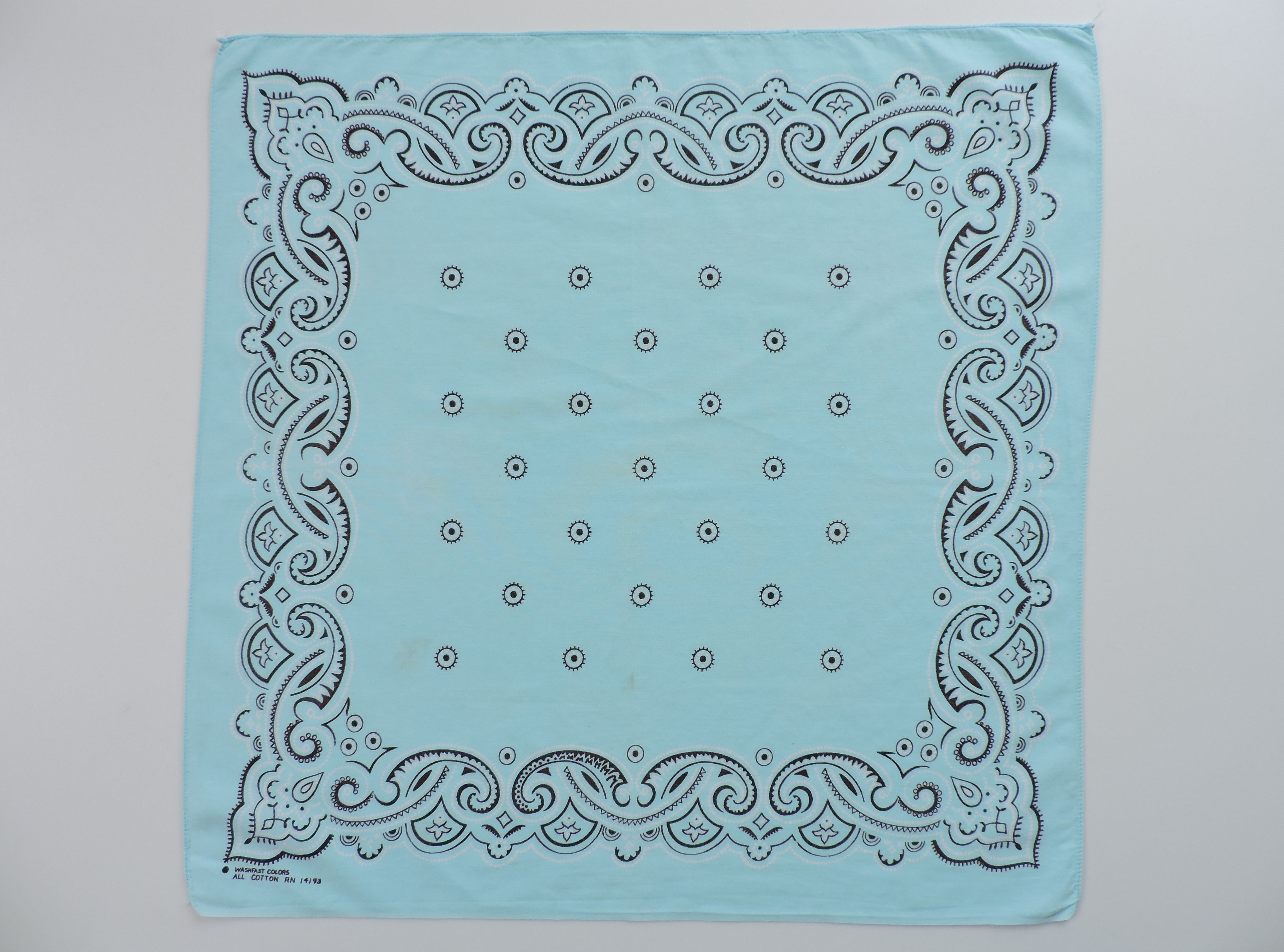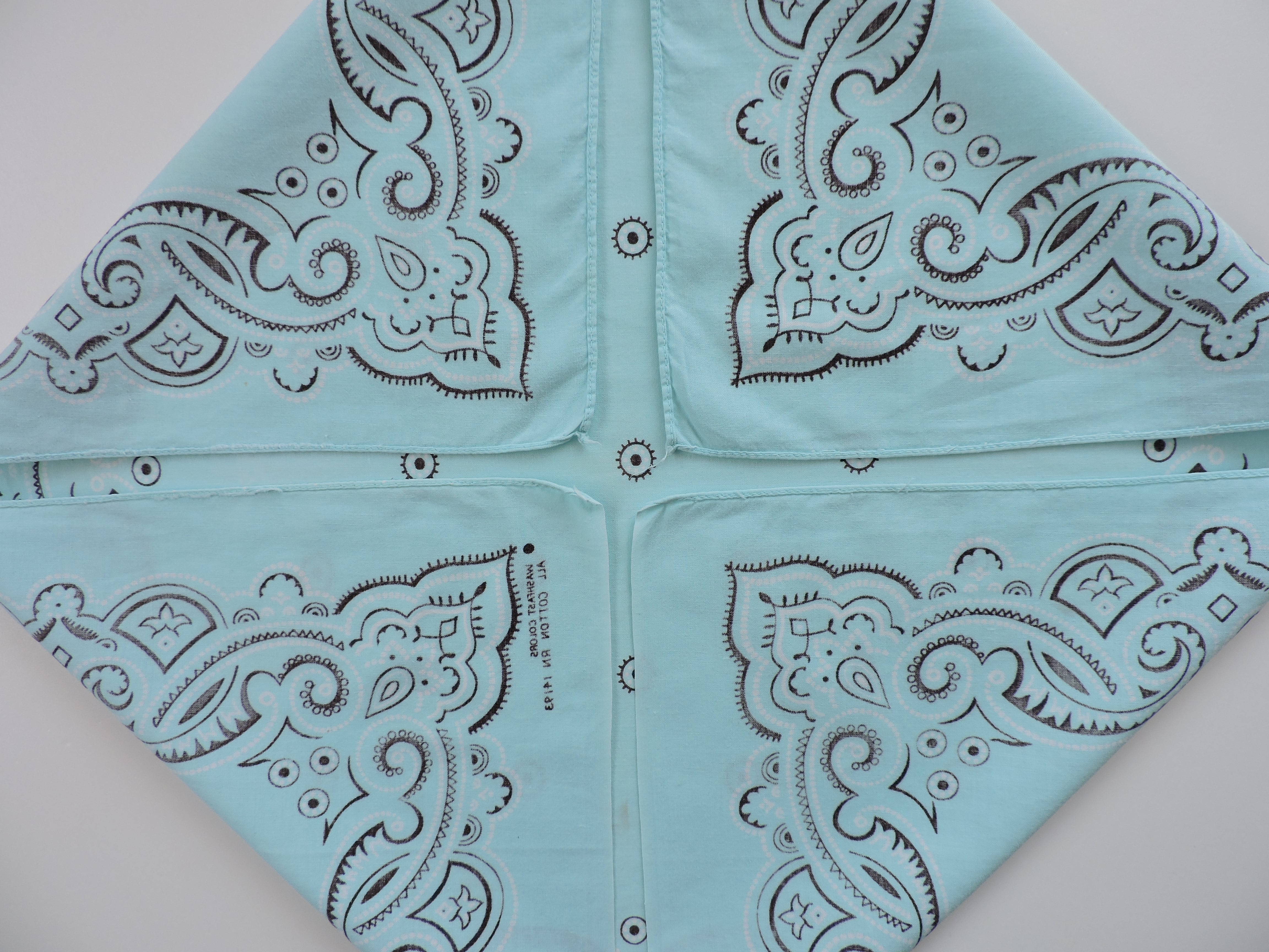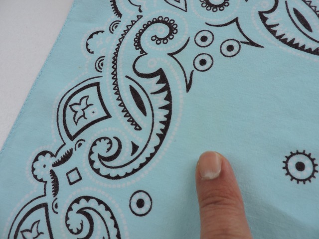 RN14193(WAMCRAFT社) 「MMM…」Washfastcolors ヴィンテージバンダナ USA アメリカ製 アイスブルー