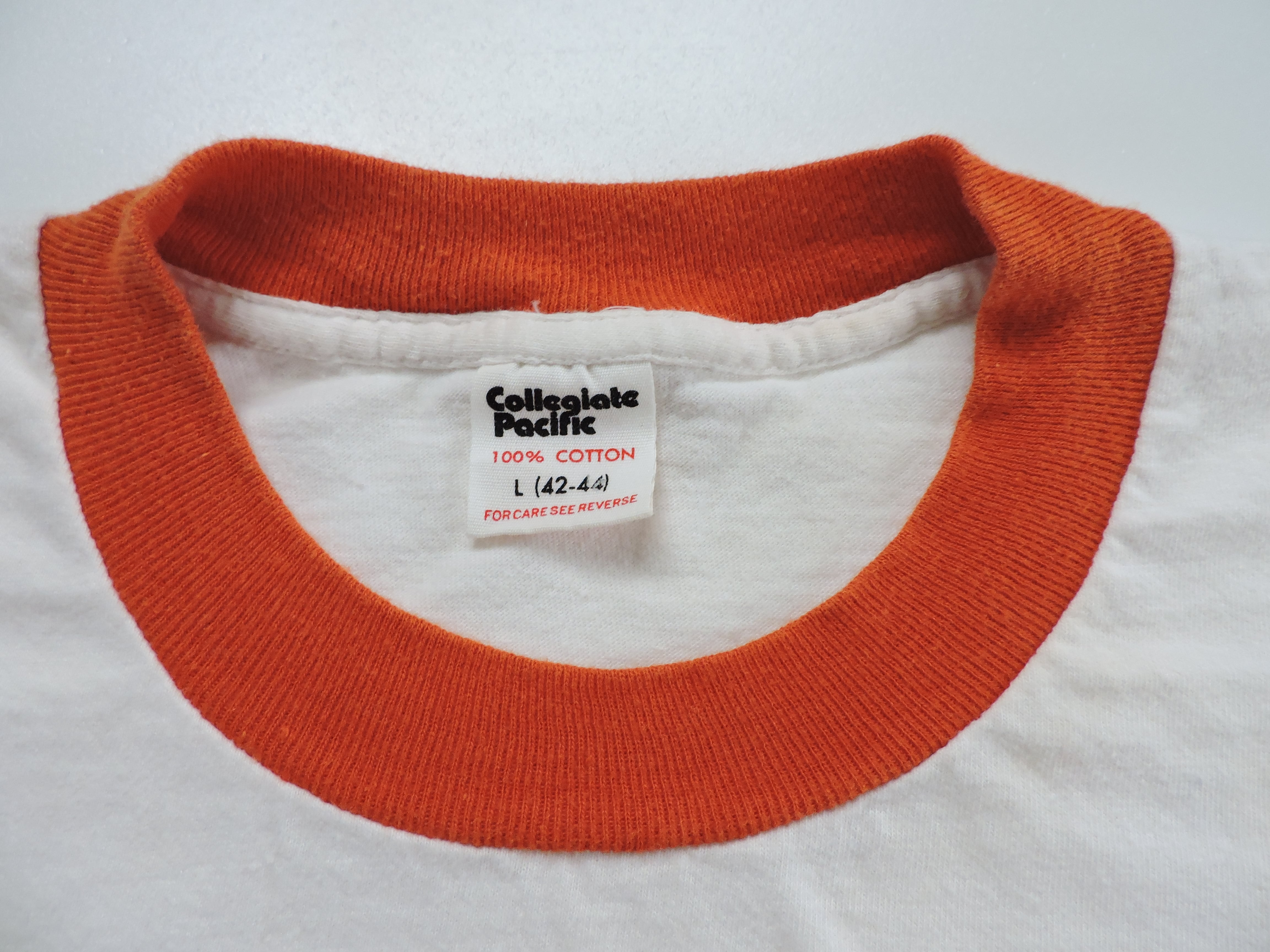 「Collegiate Pacific」のタグが付く80年代トリムTシャツ。