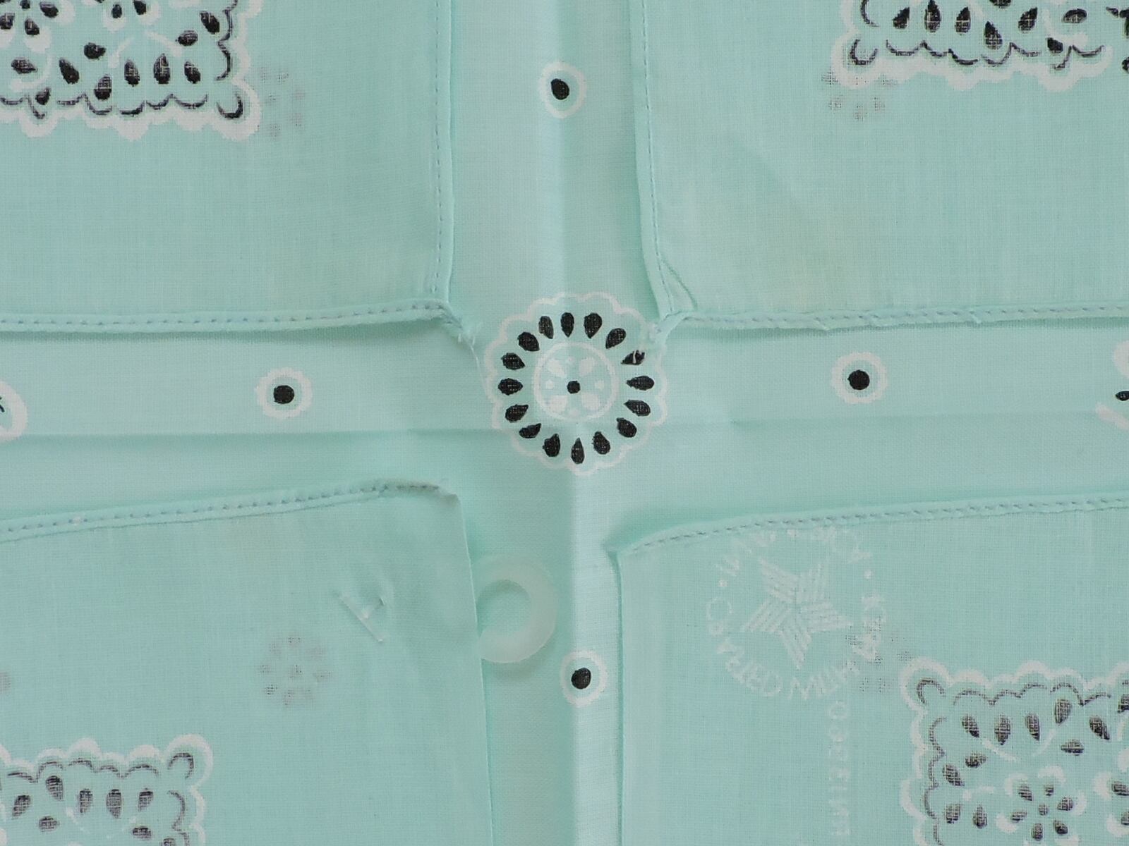 全てのバンダナの左下角にプラスチックのパーツが付いています。