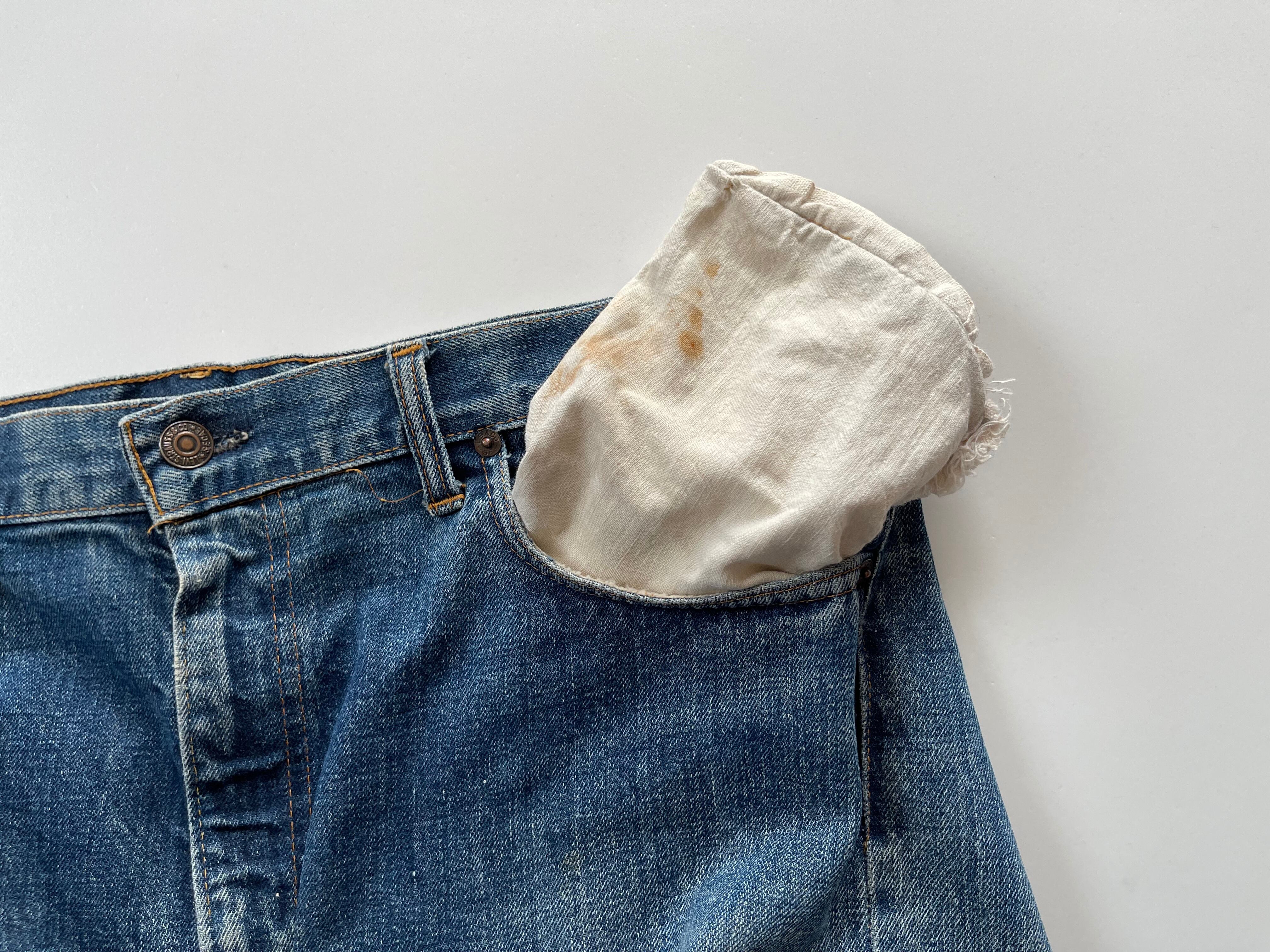 ダメージはリベット裏が取られていること、ポケットがリサイズ?リペア?されています。