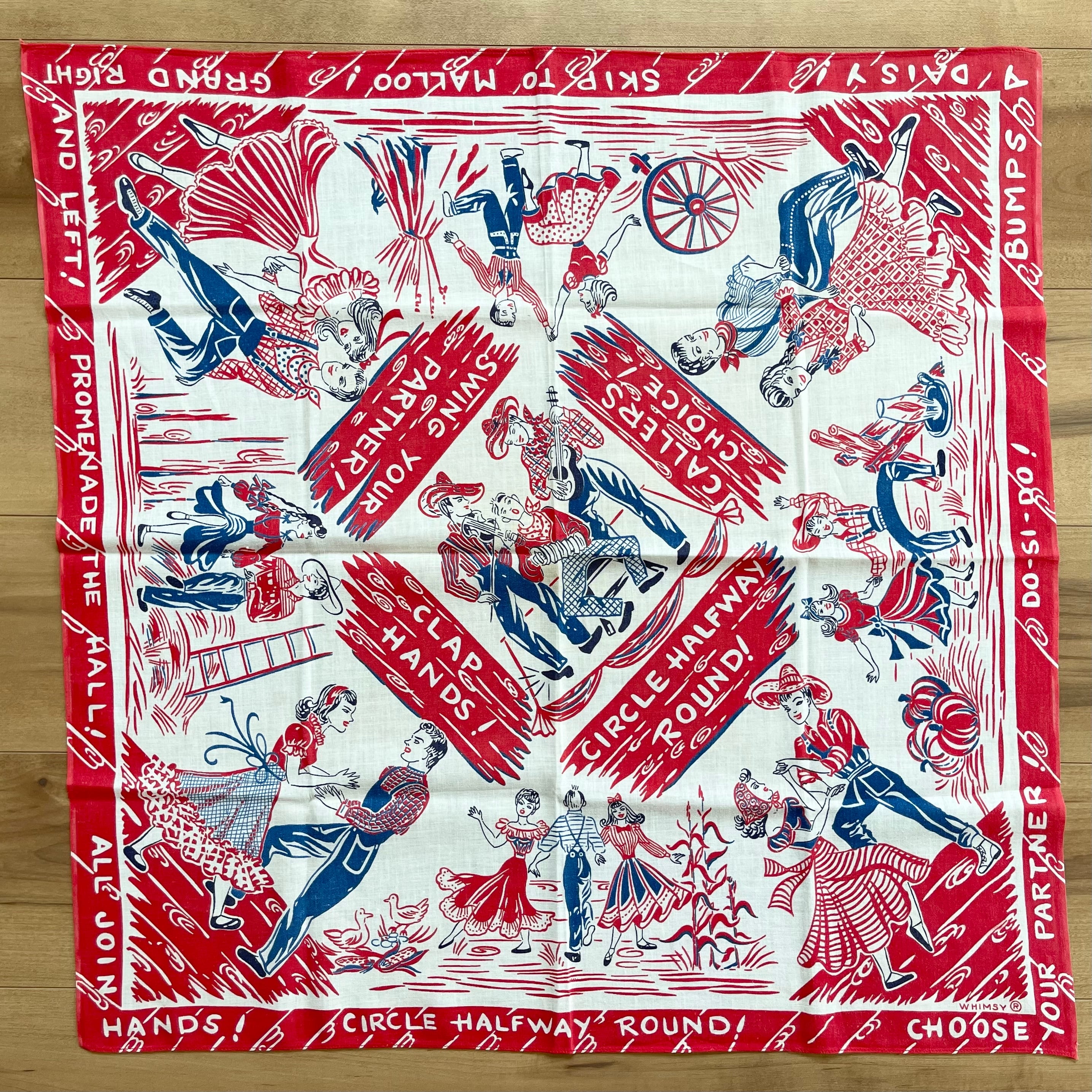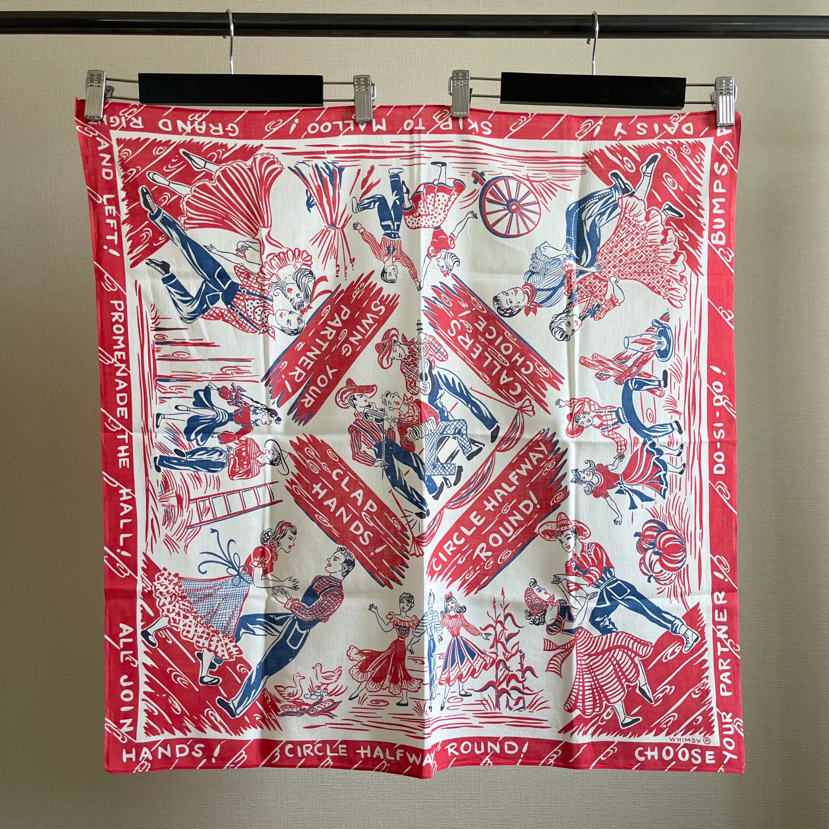 40年代、WHIMSYのダンスデザインの大判両耳バンダナ。