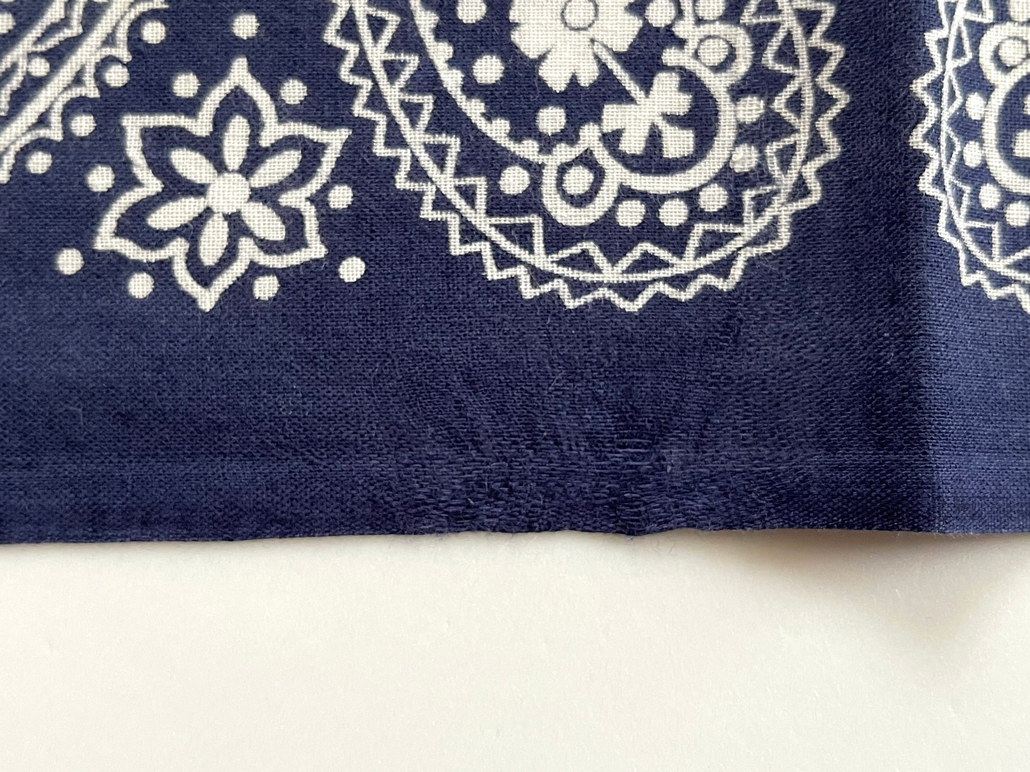 生地1辺がミミ付き、2辺シングルステッチ、1辺チェーンステッチ。